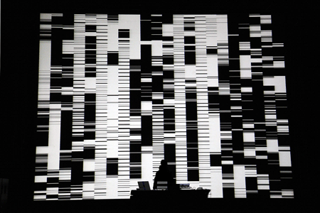 Ryoji Ikeda utilizes and applies the aesthetics of mathematics in his digital works.